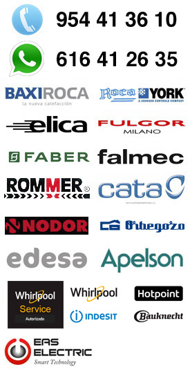 Somós Servicio Técnico Oficial en Sevilla de las principales marcas de electrodomésticos del mercado, BAXI, ROCA YORK, ELICA, FULGOR MILANO, FABER, FALMEC, ROMMER, EDESA, CATA, NODOR, APELSON, TAURUS, ORBEGOZO, EAS ELECTRIC Y WHIRLPOOL INDESIT, confian en nuestros profesionales. Le garantizamos el óptimo tratamiento de su electrodomesticos, así como el uso de recambios originales, atendiéndole en el menor plazo de tiempo y con la posibilidad de concertar cita para visitarle el día y la hora que más le convenga. Con la seguridad, garantía y confianza del servicio oficial del fabricante. Disponemos de un amplio stock de recambios originales.